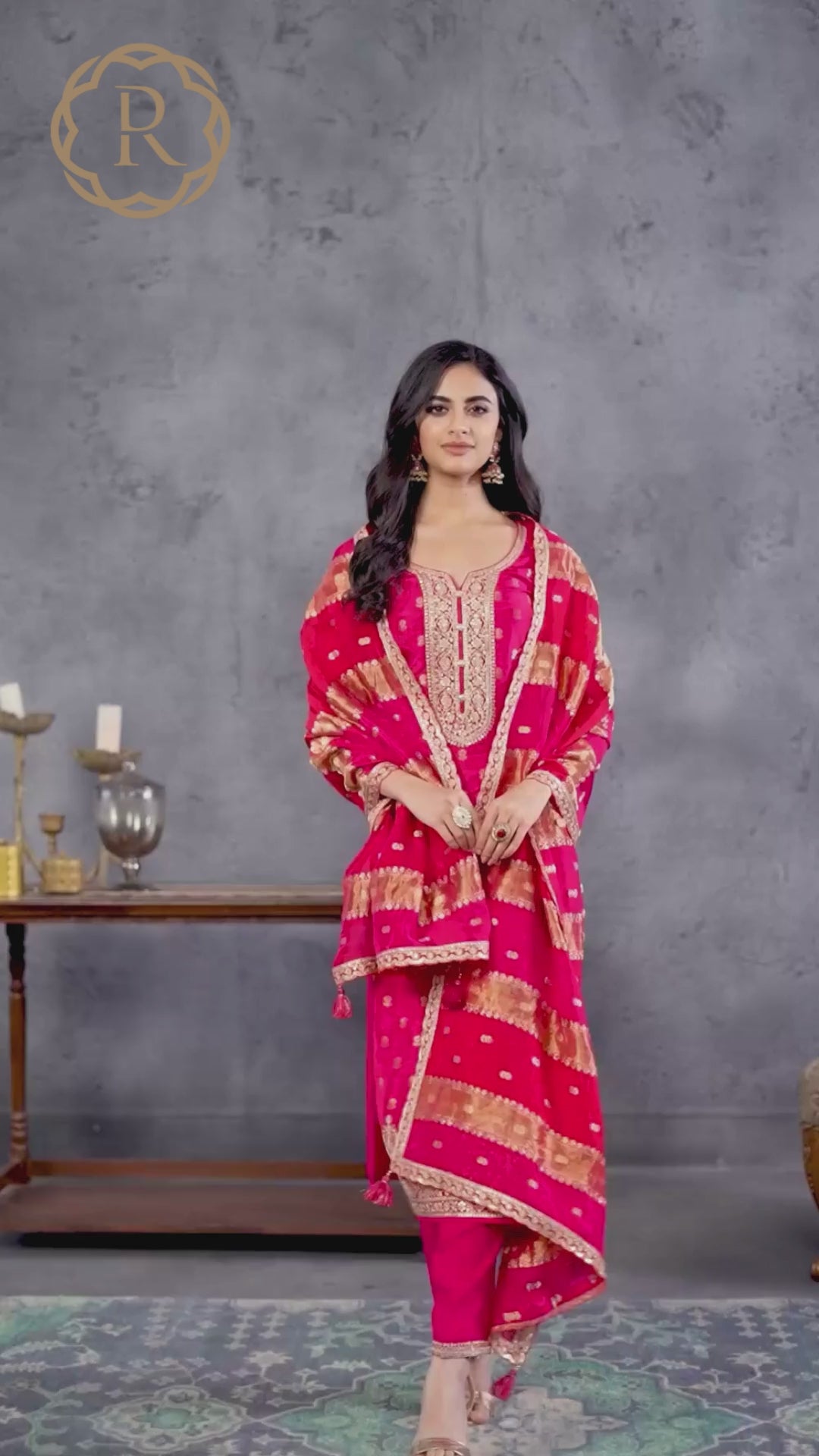 Shyla Straight Kamiz & Pant This striking hot pink ensemble showcases the Shyla straight kamiz and pant set, adorned with intricate silk zari embroidery that captures light beautifully. The straight silhouette ensures a graceful drape and comfortable wear throughout the day.